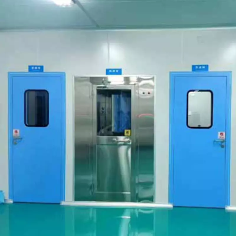 The steel door frame and door panel are both made in one piece, and the surface is treated with electrostatic spraying. The product has no seams, no welding points, no dead corners, and is overall smooth and flat, easy to clean and does not accumulate dust. This door is equipped with high-grade rubber and plastic sealing strips on three sides and an automatic lifting sweeping strip at the bottom, which ensures strong air tightness and effectively guarantees the purification effect inside the room. The observation window is made of double-layer tempered glass with two-centimeter printed black (white) edges around it. The glass is flush with the surface of the door panel, which is not only sealed and firm but also beautiful and attractive. The door panel thickness is 40mm and 50mm. The core material is first filled with high-strength flame-retardant core material, fully meeting the fire protection requirements of the purification workshop.